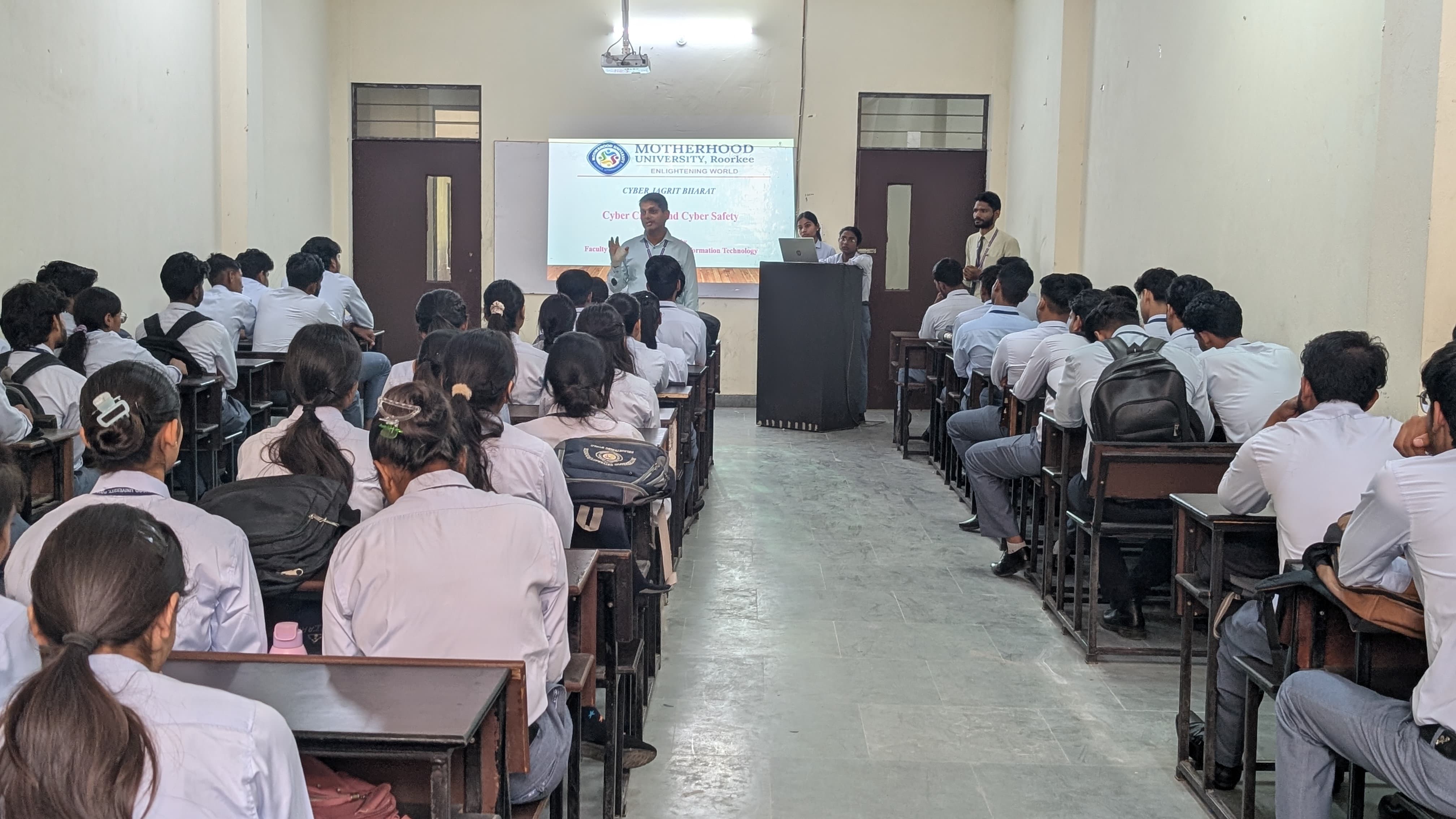 रुड़की। मदरहुड विश्वविद्यालय रुड़की में राष्ट्रीय साइबर सुरक्षा जागरूकता सप्ताह के अंतर्गत “साइबर क्राइम और साइबर सेफ्टी” विषय पर एक विशेष व्याख्यान का आयोजन किया गया। यह कार्यक्रम विश्वविद्यालय के कंप्यूटर साइंस एवं सूचना प्रौद्योगिकी विभाग द्वारा आयोजित किया गया।