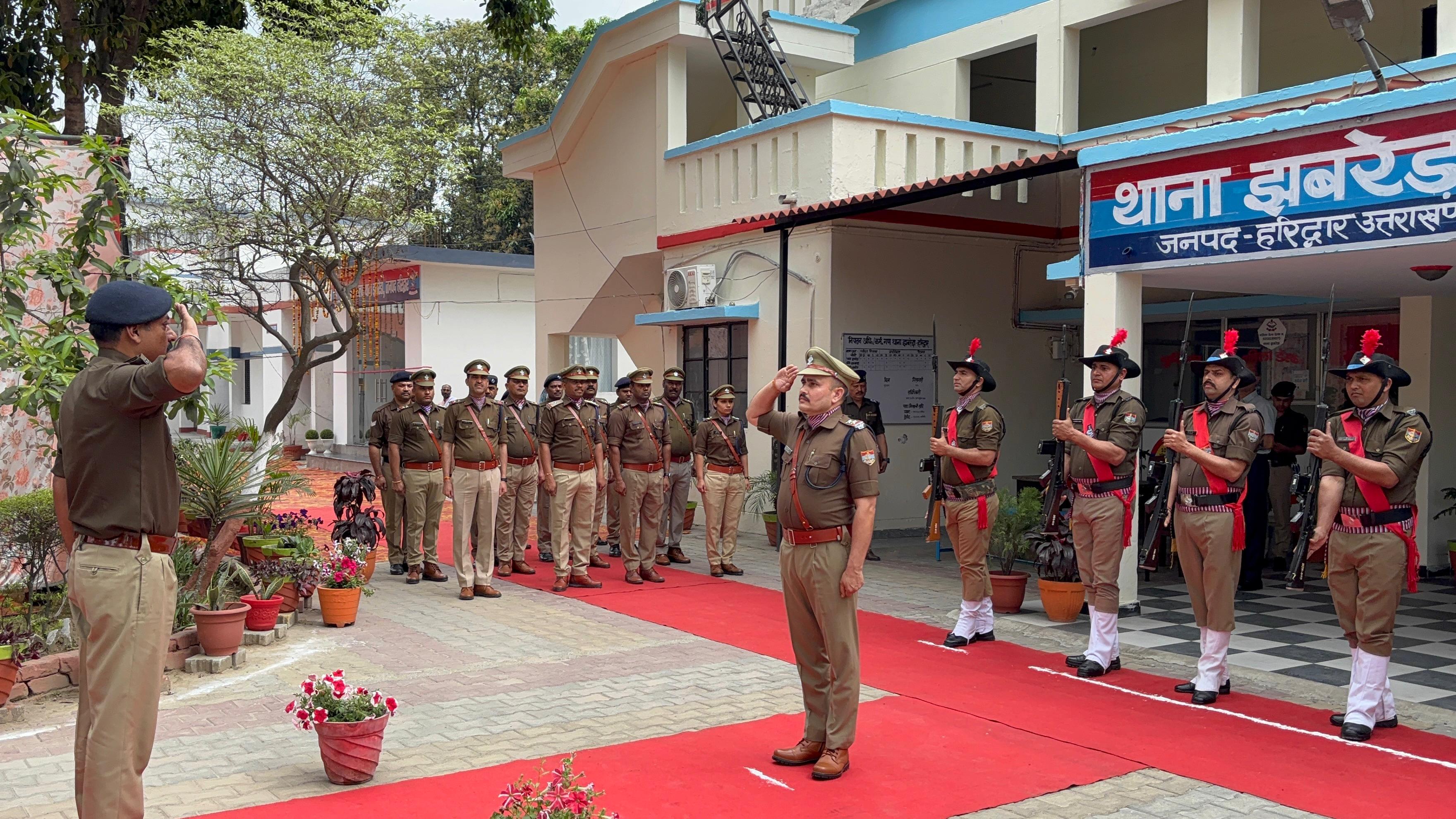 झबरेड़ा (रुड़की ): थाना झबरेड़ा में वरिष्ठ पुलिस अधीक्षक हरिद्वार नवनीत सिंह भुल्लर ने वार्षिक निरीक्षण किया। इस दौरान सेरिमोनियल गार्द ने उन्हें आकर्षक सलामी दी। निरीक्षण के दौरान एसएसपी ने थाना परिसर, कार्यालय, कर्मचारी बैरक और भोजनालय का जायजा लेते हुए स्वच्छता व्यवस्था पर संतोष व्यक्त किया।