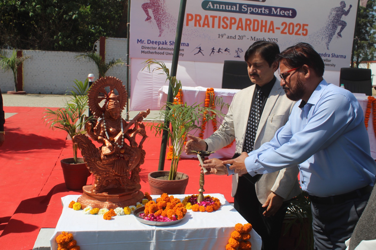 रुड़की। मदरहुड विश्वविद्यालय रूड़की के कुलपति प्रो. डॉक्टर नरेंद्र शर्मा ने प्रतिस्पर्धा-2025 का उद्द्घाटन का शुभारंभ किया है। उन्होंने बताया कि सभी खेलों को बढ़ावा देने हेतु वार्षिक खेल महोत्सव का शुभारंभ किया गया। विश्वविद्यालय में स्पोर्ट्स मीट "प्रतिस्पर्धा-2025" का शुभारंभ करते हुए मदरहुड विश्वविद्यालय, रूड़की के माननीय कुलपति प्रो० डॉ० नरेंद्र शर्मा ने छात्र-छात्राओं में उत्साह भरते हुए कहा कि खेलों के द्वारा न केवल शारीरीक बल्कि मानसिक विकास भी होता है। खेल हमें जीवन जीने की प्रेरणा देते हैं साथ ही यह भी बताते हैं की हार- जीत जीवन का अभिन्न अंग है।