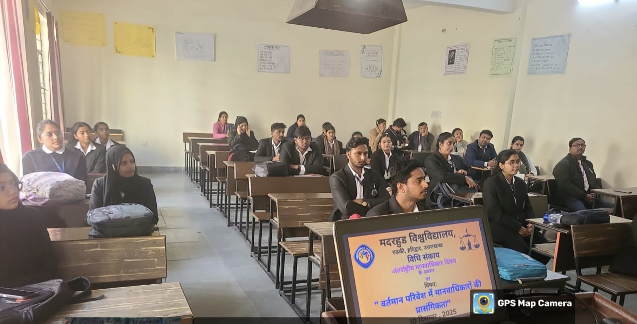 रुड़की। मदरहुड विश्वविद्यालय रुड़की के विधि संकाय द्वारा “आज के परिवेश में मानवाधिकार की प्रासंगिकता” विषय पर एक महत्वपूर्ण व्याख्यान का आयोजन किया गया, जिसमें विद्यार्थियों को मानवाधिकार और उससे जुड़े आधुनिक संदर्भों पर विस्तृत जानकारी दी गई।